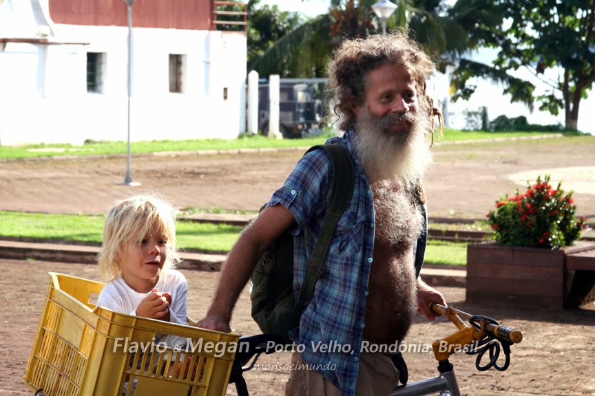 來訪韋柳港的意外收穫,莫如認識了 Flavio,當我們在那廢置的 “Madeira-Mamoré 森林鐵路”車站旁遊覽時,一名貌似深山野人的男士,人們都以為他是乞丐或精神有問題的人,帶著一位很可愛的小女孩,也在遊玩。我們好奇以簡單的葡語打招呼,但他卻以流利的英語回應。交談不久,了解 Flavio 其實是 “前衛之士” ,巴西版的 “現代陶淵明”!